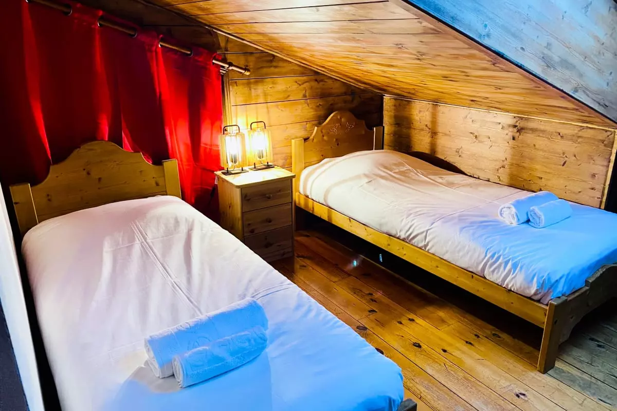 Chacune des deux chambres dispose d’un lit double, la mezzanine se compose quant à elle d’une chambre ouverte avec deux lits simples. Toutes les chambres disposent de placards de rangement.