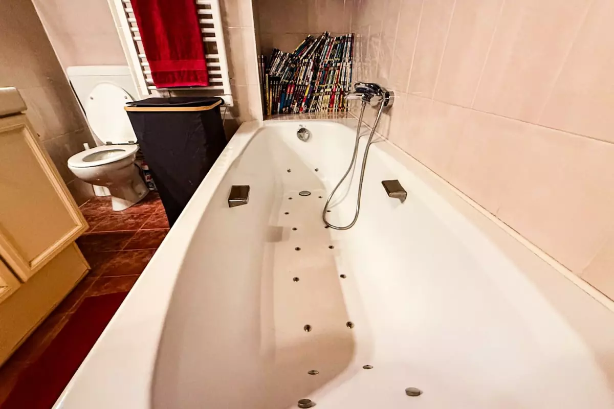 Pour votre confort, l’appartement est équipé de nombreux équipements pratiques comme un lave-vaisselle, un lave-linge, une machine à café, un micro-ondes et même un jacuzzi pour vous détendre. De plus, vous trouverez à proximité une terrasse et un jardin pour profiter de l’extérieur.