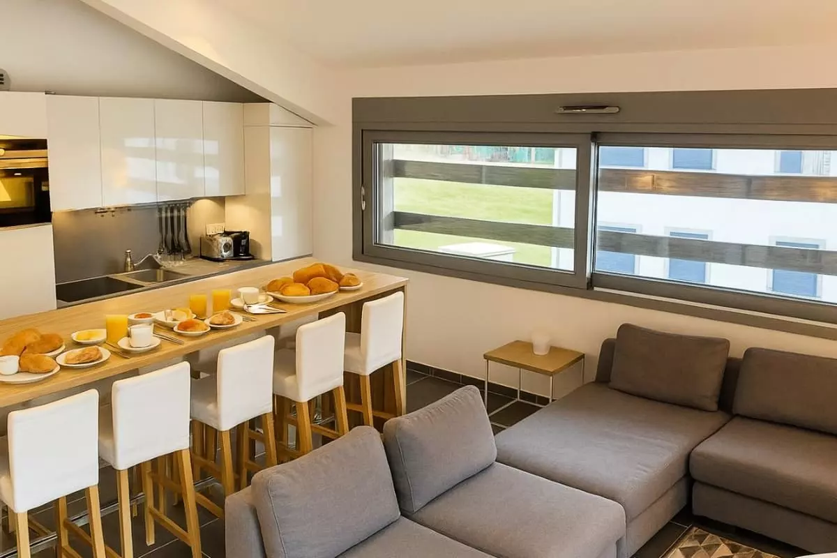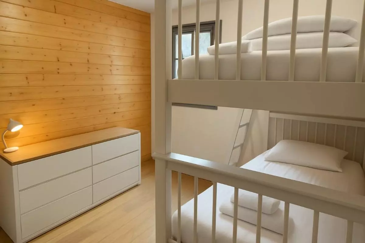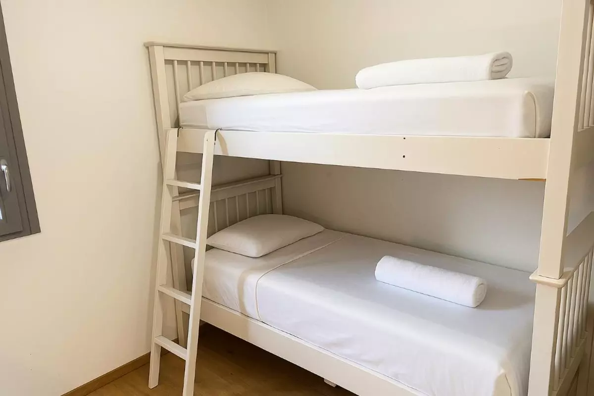 Vous trouverez une chambre confortable avec un lit double 160*190 ainsi qu’une autre chambre équipée d’un lit superposé 90*190. Pour votre détente, un salon avec un canapé convertible 125*190 vous attend après une journée de balade. La cuisine entièrement équipée et les deux salles de bain ajoutent à votre confort.