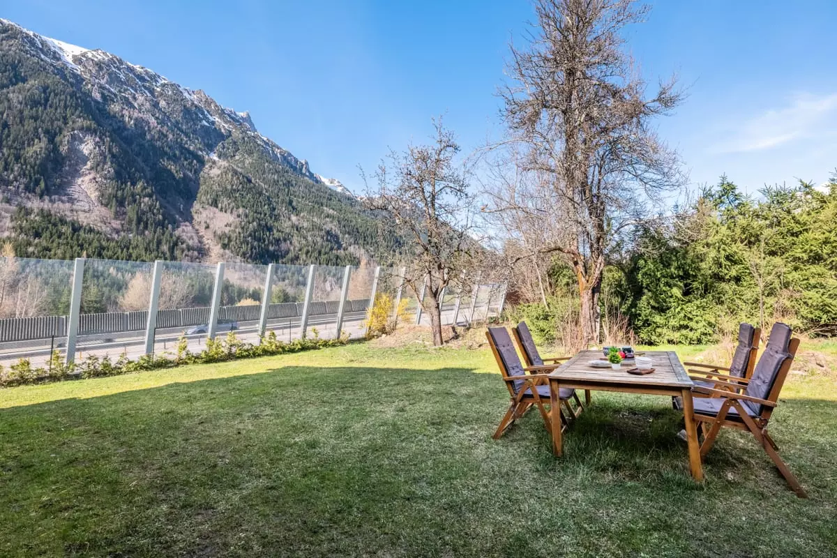 Le tout donne sur un jardin meublé offrant une magnifique vue sur l'Aiguille du Midi.
