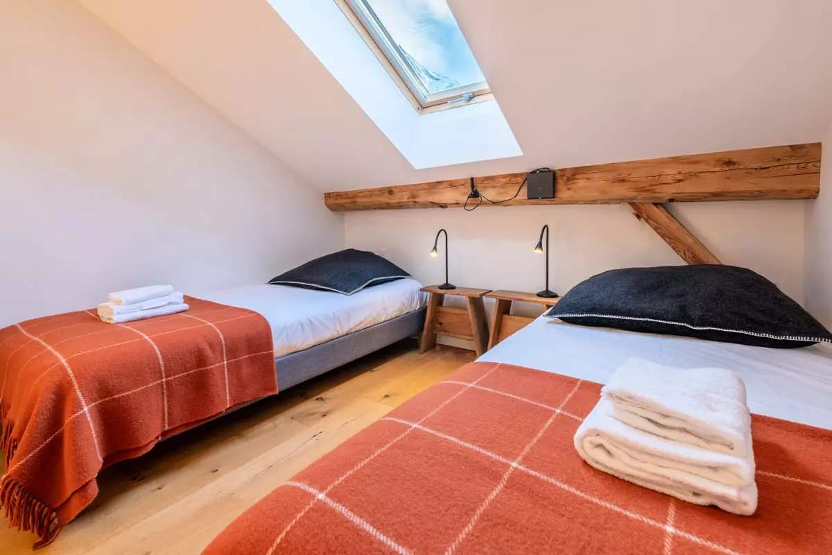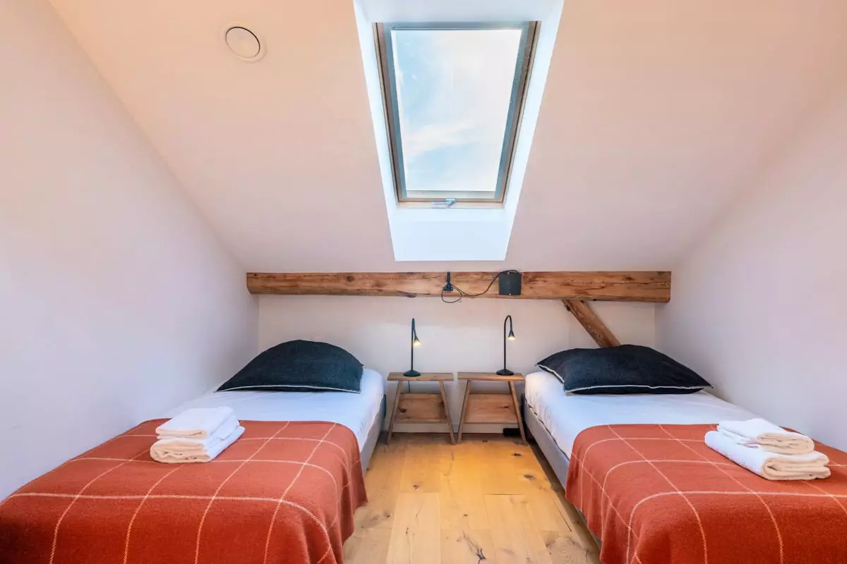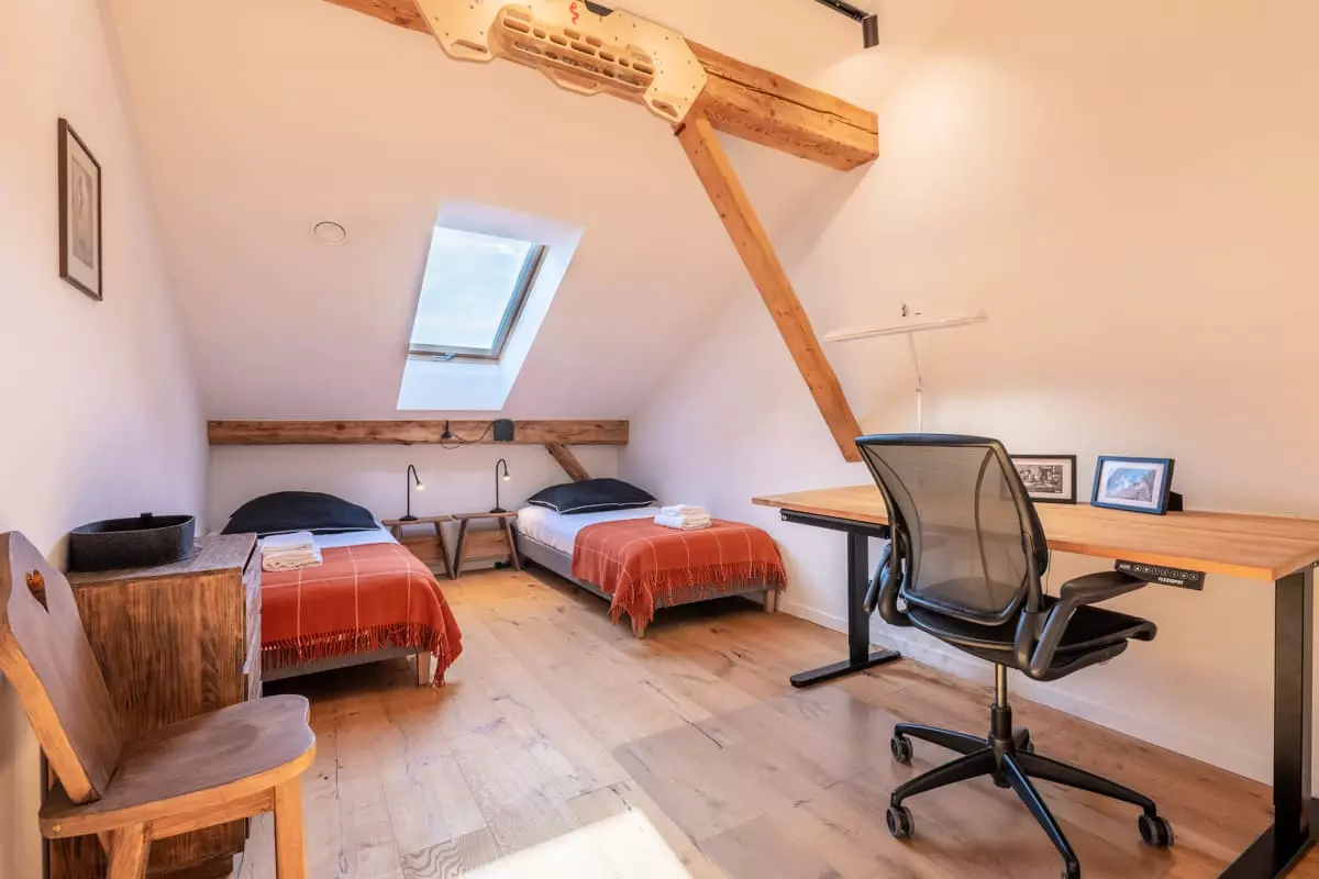 - une chambre twin avec deux lits simples 90 et un bureau ;