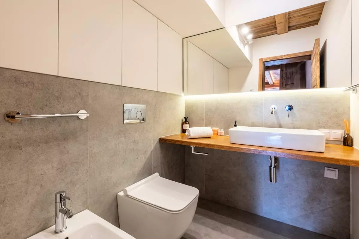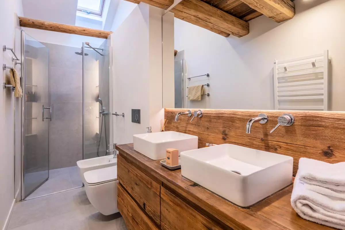 - une salle de douche avec WC, bidet et lavabo 2 vasques ;