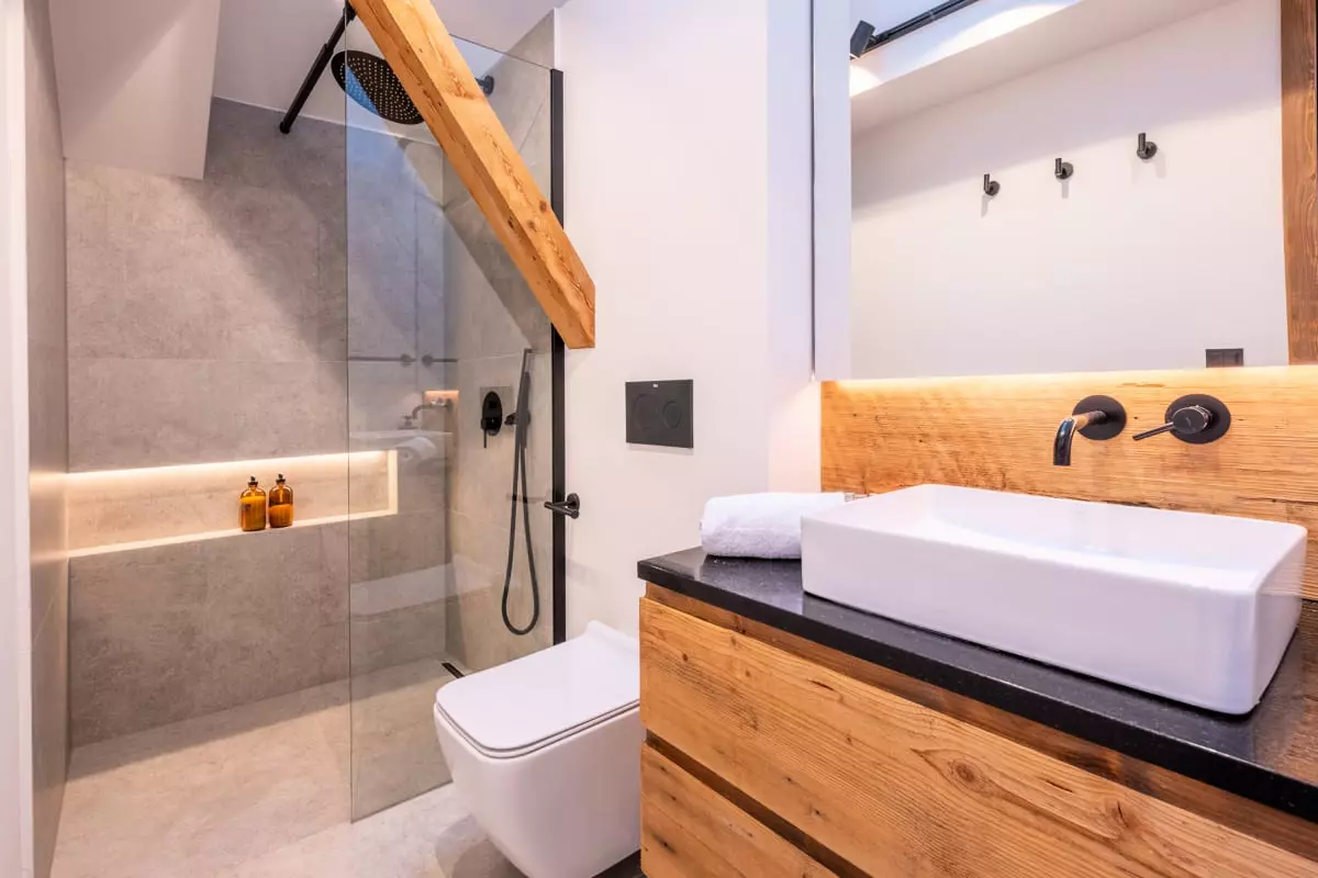 - une salle de douche avec WC et lavabo.